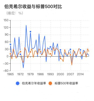伯克希尔的表现一直优于标普500指数,然而,近几年随着高成长科技类公司的崛起,形势发生了逆转,在过去10年,伯克希尔并没有标普500指数ETF表现好,不过如果把2000 年互联网泡沫破灭后的10年算上,伯克希尔仍然以绝对优势领先。