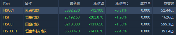 12月17日,港股低开低走全天弱势,恒生指数收跌1.2%报23192.63点,本周跌3.35%;恒生科技指数跌2.43%再创新低,本周跌5.88%;恒生国企指数跌1.58%,本周跌4.2%。全天大市成交1626.1亿港元,南向资金逆市净买入49.15亿港元。科技、光伏、教育股跌幅居前,信义光能跌超9%领跌蓝筹;携程跌超10%,美团、哔哩哔哩跌超5%。