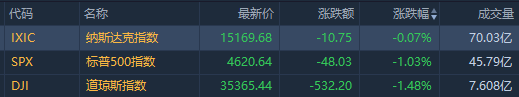 美国三大股指全线收跌,美联储多位官员发表偏鹰派讲话,且奥密克戎变异毒株继续困扰市场,令资金避险意愿升温。道指跌1.48%,标普500指数跌1.03%,纳指跌0.07%。本周,道指跌1.68%,标普500指数跌1.94%,纳指跌2.95%。高盛跌3.87%,沃尔玛跌3.23%,纷纷领跌道指。银行股全线走低,摩根大通跌2.26%,花旗跌2.54%。