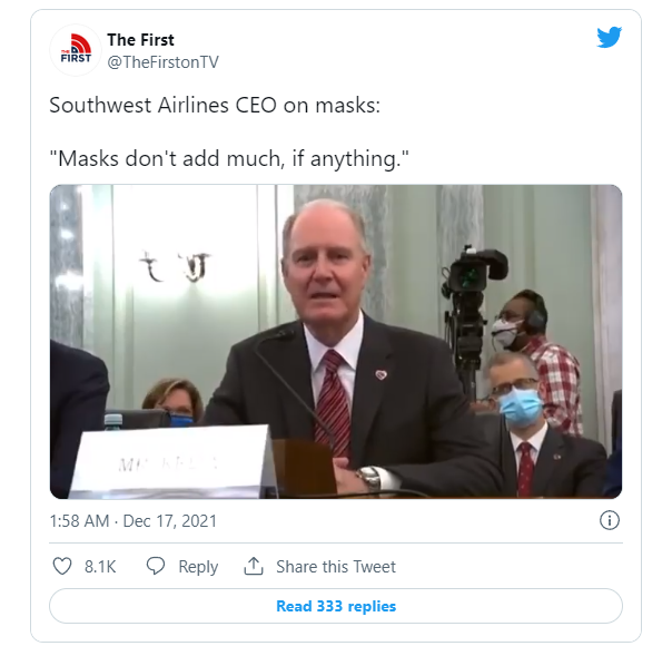 原标题:在告诉国会口罩“没有增加多少”保护后 美西南航空CEO确诊感染新冠 来源:cnbeta