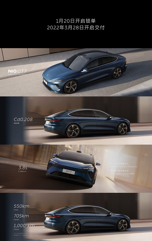原标题:3.8s破百能跑1000公里 蔚来ET7明年3月28日开启交付 来源:快科技