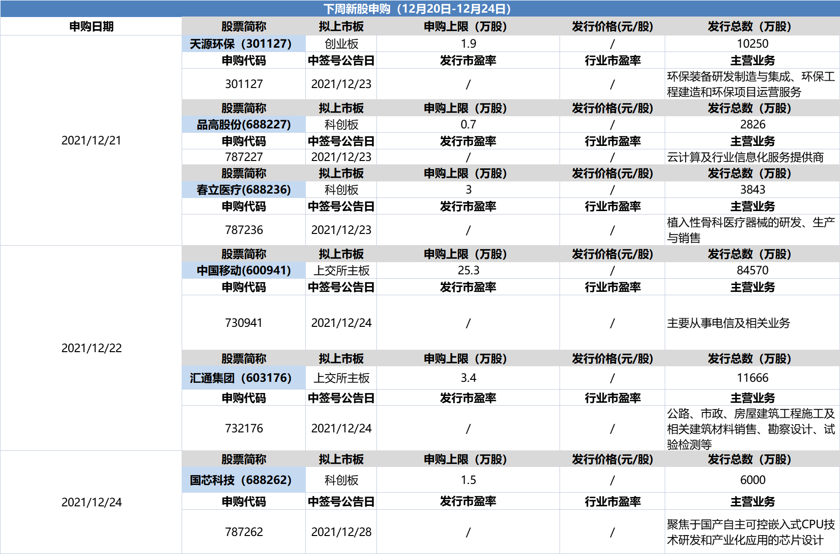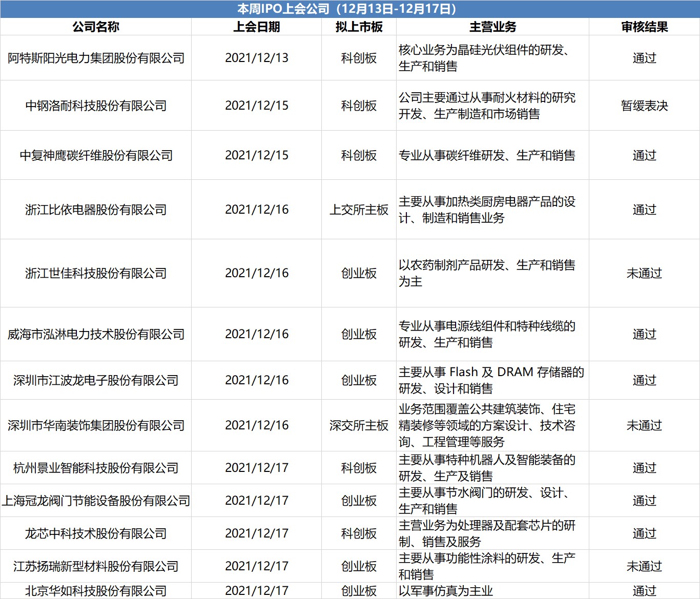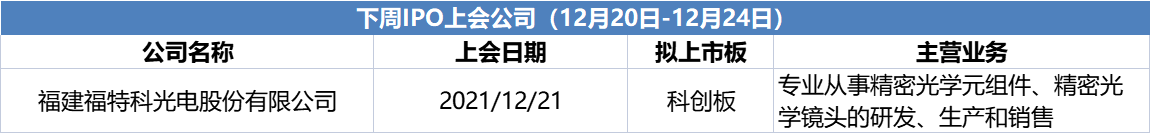 本周(12月13日至12月17日)及下周(12月20日至24日)IPO动态如下: