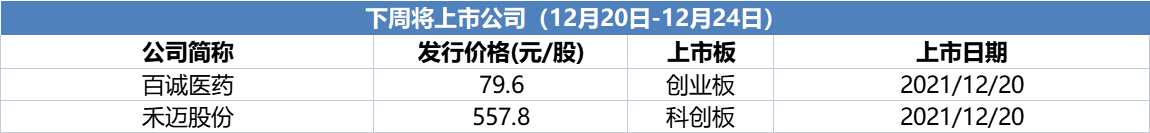 截至截稿时间12月17日,信息披露显示,下周有2家公司将上市。