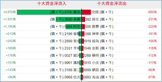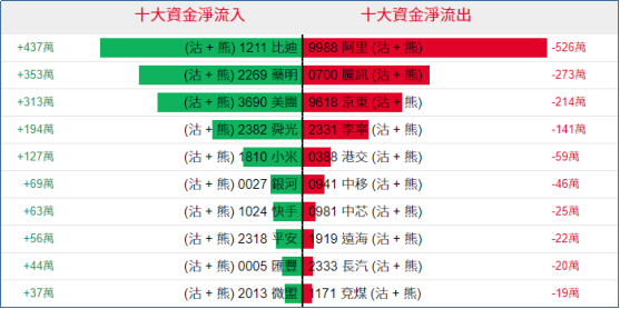 淡仓(认沽证及熊证)方面,上周五比迪、药明等相关淡仓获少量资金净流入;阿里、腾讯见部分资金净流出。