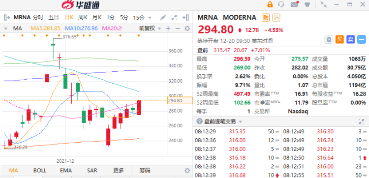 Moderna $MRNA 盘前涨超7% 此前表示加强针可提高针对omicron抗体水平