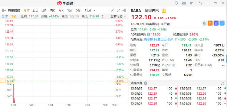 阿里巴巴(BABA)盘前跌超4%。据报道,“电商主播”薇娅原定于今晚7点的淘宝直播预告消失。此前,其直播间显示,薇娅原计划晚7点进行“薇娅彩妆节”直播,明星化妆师杨单空降薇娅直播间。目前,该直播预告已经消失。