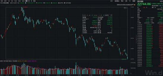2021年港股走势呈现为先涨后跌,恒生指数在1-2月份呈现为延续2020年下半年的上升趋势,在2月份最高达到31183.36点,创下近两年新高;随后3-6月指数箱体横盘,在7月份展开连续性下跌;截止12月20日,恒生指数年内下跌幅度达16.47%,自今年2月高点以来下跌幅度达27.32%。