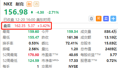 耐克股价在周一盘后交易中上涨超3%,该公司报告了好于预期的第二财季业绩,尽管供应链压力持续。