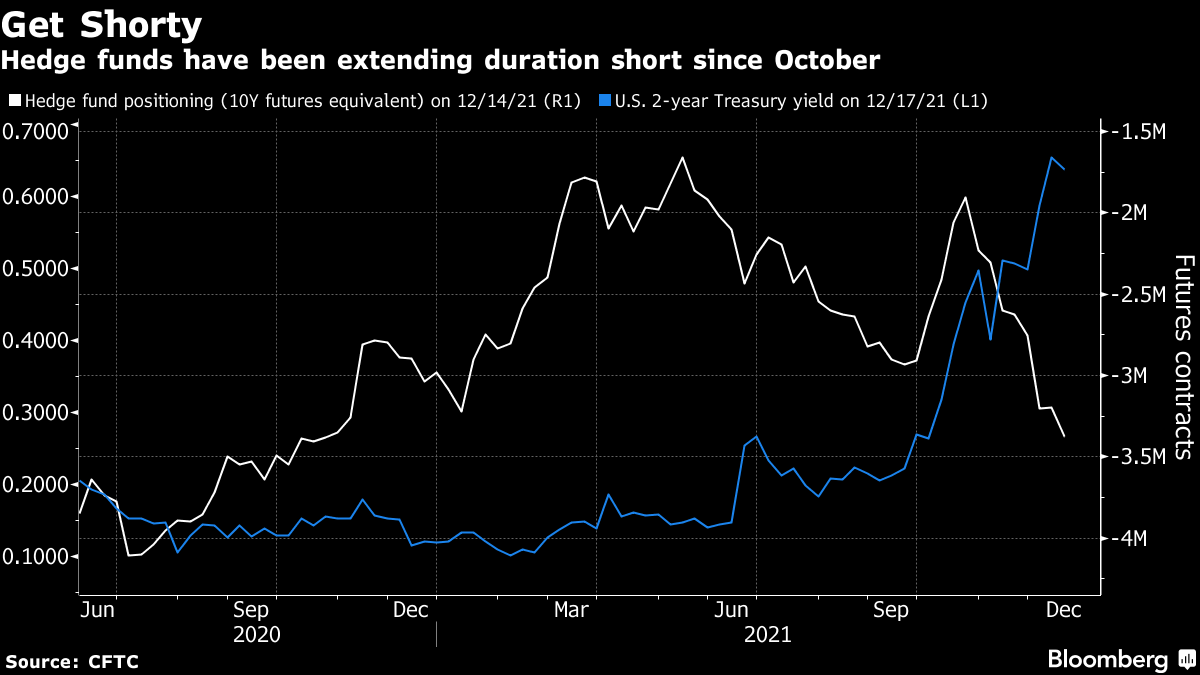 对冲基金因为期待全球央行转向鹰派而一直在大举抛售美国国债,现在对他们而言,可谓是万事俱备,只欠美联储兑现加息预期的东风。