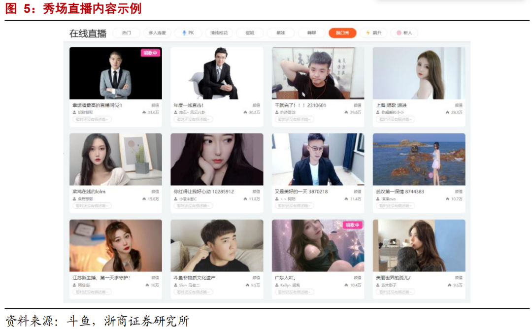 2.1.1.秀场直播:缺乏多样性,自有流量为王