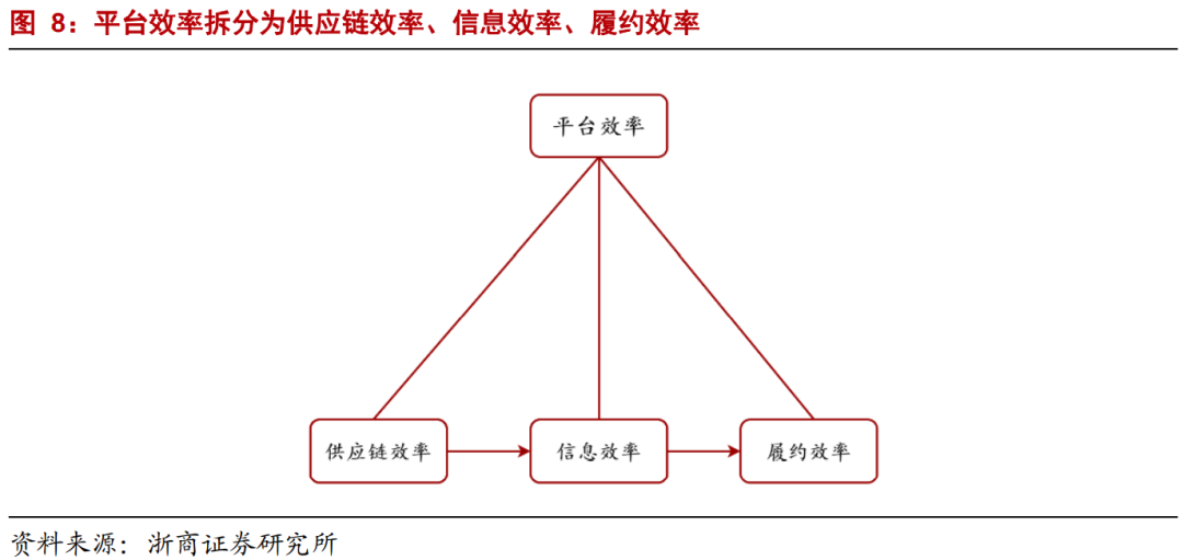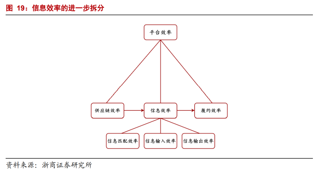 在多数情况下,信息效率之争成为重中之重。在这里,我们将平台效率分为三部分,供应链效率、信息效率、履约效率,分别对应商品或服务从生产到交付的三个阶段。