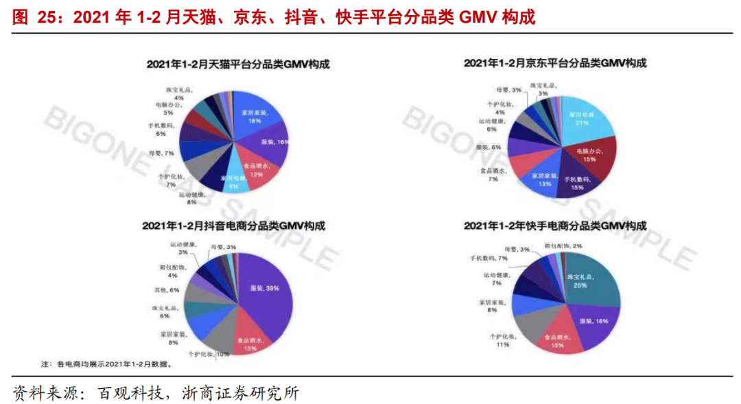 我们认为,商品平台中,字节跳动的抖音电商具备最大的发展空间,将持续蚕食高单价非标品的市场,在这一过程下,电商巨头的空间都会受到挤压。