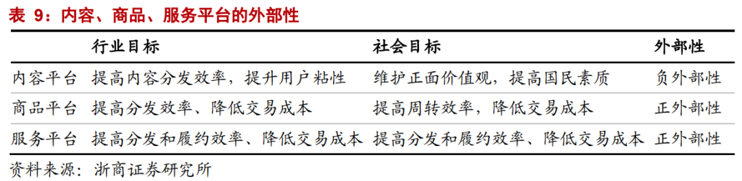 我们通过考察行业的外部性,研究平台核心商业模式和监管的关系。我们认为,商品、服务平台不具有负外部性,或能得到监管支持。但内容平台有一定的负外部性,核心商业模式或会受到挑战。