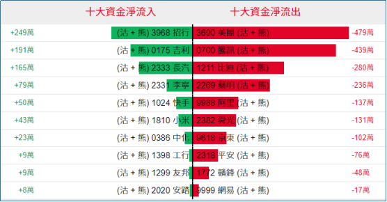 淡仓(认沽证及熊证)方面,周一个股相关淡仓资金流较小,美团、腾讯相关淡仓逾400万港元资金净流出。