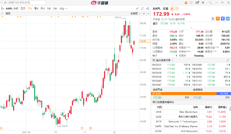 根据苹果供应链消息,苹果汽车将于2022年9月发布,较原计划规划提早至少两年。同时穆迪评级机构将苹果信用评级从Aa1上调至Aaa,前景展望稳定。苹果隔夜收高1.9%,成交145.9亿美元。