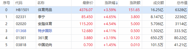 华盛资讯12月22日消息,部分体育用品股拉升走强。截至发稿,李宁涨4.65%,报85.45港元每股,成交额8.14亿港元;安踏体育涨4.54%,报115.2港元每股,成交额5.7亿港元;特步国际涨4.11%;361度涨3.19%;中国动向跟涨。