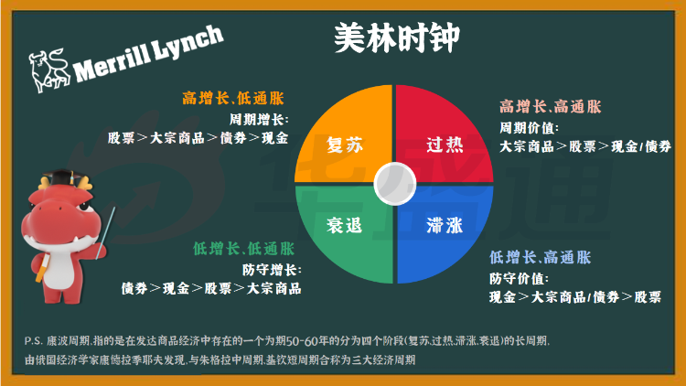 在Covid-19大流行初期一度成了网红,最近热度再次回归的“美林时钟”是一个非常实用的指导投资周期/资产配置的的投资工具。