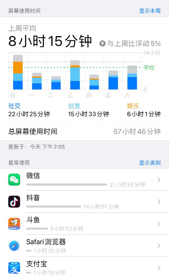 加之微信本身已经成为一个国民级的APP,形成强用户粘性和使用习惯。就以笔者为例,在每周的APP使用时间中,微信的使用时间位居榜首,时长超过10个小时。