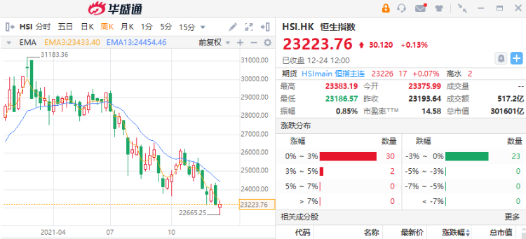 同时在港股中市值占比较大的内地房地产公司今年也出现了大幅下跌,中国恒大暴跌84%,碧桂园下跌30%,融创中国下跌48%,这样就进一步加剧了市场下跌的压力。