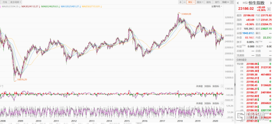 不过目前从技术形态上看,短期恒生指数均处于底部区域,并有往上反弹的迹象,叠加回购潮,难道港股拐点要来了吗?