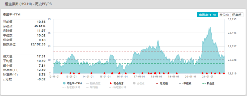 目前恒生指数PE(TTM)10.45倍左右,历史分位点34.5%,PB1.06倍,历史分位点10%,几乎要跌破净资产。总体估值处于近10年的中线位置,还算事合理。