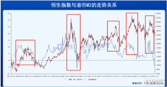 比如,2015年夏季的股市大顶,港币M2在2014年7月见顶;去年四季度M2出现顶部,随后港股今年年初就开始出现顶部,所以可参考性还算很大的。