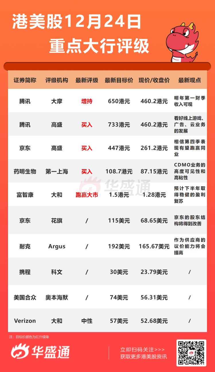 至于第四季度业绩预期,京东管理层透露,内地零星疫情,加上旅行限制、供应链中断、令集团业务持续受压,但仍相信第四季表现有望跑赢同业。高盛维持京东“买入”评级(“确信买入”名单),目标价为447港元。此外高盛也将腾讯列入“确信买入”名单,予目标价733港元。