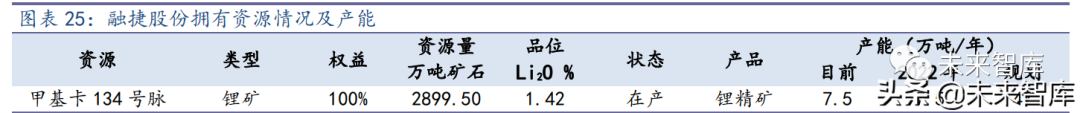 融达锂业 2019 年 6 月正式投产,建成一期 45 万吨选矿能力,2020 年 10 月达 到采矿 105 万吨/年,选矿 45 万吨能力,是目前四川省内除了业隆沟之外的唯二在产 锂矿。远景规划方面,融捷选矿产能项目规划为 250 万吨/年,计划于 2022 年底投产, 已经进行了环评第二次公示。但项目采矿工程只有 105 万吨/年,存着原矿不足的问题, 可外购矿石或者扩大采矿规模与之相匹配,采选规模匹配后,可年供应锂精矿约 47 万 吨。