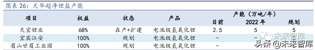 眉山工业园,6 万吨电池级氢氧化锂。2021 年 9 月 2 日,公司公告与四川省眉山 市甘眉工业园区管理委员会拟签订项目投资合同,拟投资人民币 25 亿元,建设年产 6 万吨电池级氢氧化锂生产线。项目分两期建设,每期建设 3 万吨电池级氢氧化锂生产 规模,预计启动时间为 2022 年,2024 年底前两期全部建成。(报告来源:未来智库)