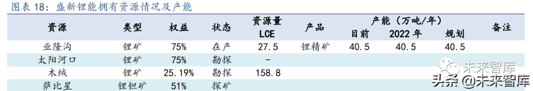 业隆沟是国内 少数在产的锂辉石矿之一,四川省第二个在产矿山,采选规模 40.50 万吨/年,于 2019 年 11 月投产。太阳河口、木绒和津巴布韦萨比星矿山均处于勘探状态,都具有较好的找矿前景, 木绒锂矿已探明资源量和品位在四川锂辉石矿中均位于前列,甚至品位也毫不逊色于 澳洲锂辉石矿;津巴布韦萨比星锂钽矿有总计 40 个采矿权证,目前仅勘探了 5 个,资源增长潜力大。