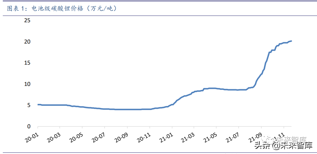 2021 年供应短缺消耗了大量锂矿库存,2022 年依然短缺的格局以及增长的新能源 订单,或将加剧下游产业链的备货需求,导致市场短缺的情绪更加明显,锂价依然有 上涨空间。不过经过 2021 年一年 4 倍的上涨行情后,后续的价格节奏走势或更加平稳, 可能为小幅上涨走势。(报告来源:未来智库)