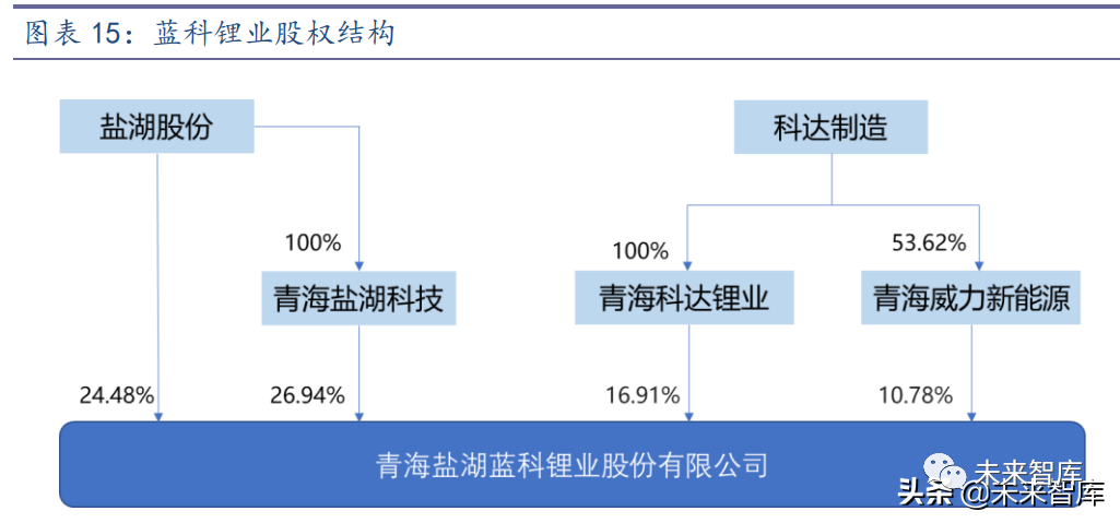 盐湖股份始建于 1958 年,前身为青海钾肥厂,以钾肥业务起家立业,是国内最大 的氯化钾生产企业,氯化钾设计产能达到 500 万吨。蓝科锂业为盐湖股份控股子公司, 股权占比 51.42%,拥有察尔汗盐湖铁路以西矿区的开采权,公司矿权覆盖察尔汗盐湖 的核心区段。
