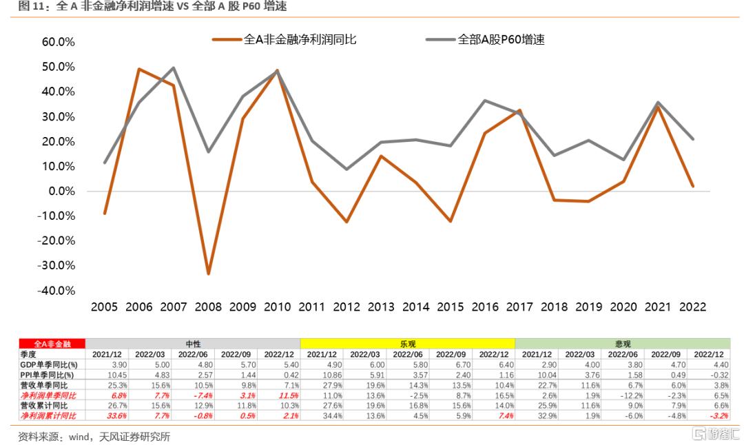 为了估算这一增速,我们把历史的全A非金融增速和P60增速进行拟合得到: