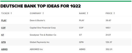 德意志银行于12月22日公布了其2022年第一季度最青睐的股票。该榜单涵盖了消费、金融、医疗保健、工业以及科技、媒体和电信等行业。