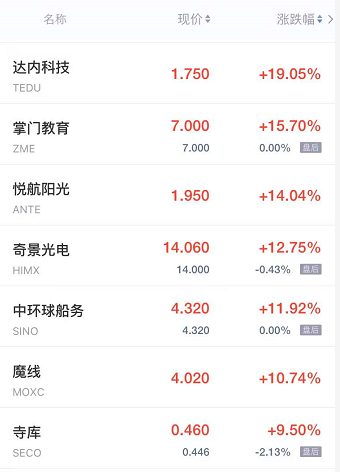 (截图来自新浪财经APP 行情-美股-中概股热门板块)下载新浪财经APP
