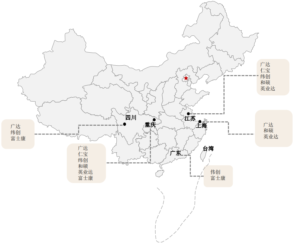 图表:台系组装厂商在大陆的布局(截至2H21)