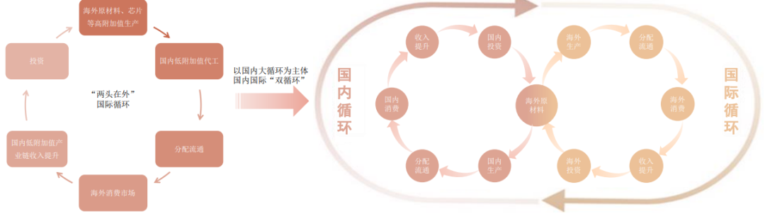 图表:“两头在外”的国际循环向以国内大循环为主的双循环转变