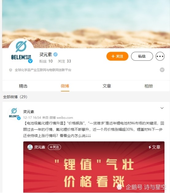 公司在财报里大书特书的线上物流电商“灵元素”概念,渲染的云里雾里,但官方微博只有10个粉丝(2021年12月23日23点截图)。
