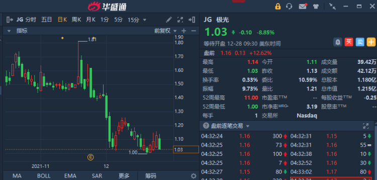 极光(JG)盘前一度涨超27%,现涨幅收窄至12.62%。消息面上,极光获中国信通院数据安全治理能力(DSG)评估认证。