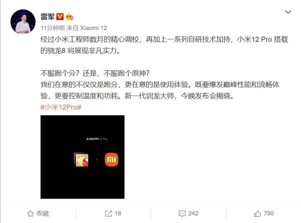 雷军强调,新一代驯龙大师小米12 Pro今晚将正式揭晓,我们在意的不仅仅是跑分,更在意的是使用体验。既要爆发巅峰性能和流畅体验,更要控制温度和功耗。