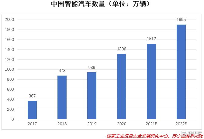我国智能汽车数量2017年达367万辆,到2020年底,已快速增至1306万辆。照此发展趋势,预计2022年我国智能汽车数量将达到1895万辆。我国智能汽车渗透率2017年仅为12.7%,到2020年底,已超50%,主要原因是智能汽车的快速发展。未来,随着智能汽车数量的不断增长,预计2022年我国智能汽车渗透率将达72.9%。