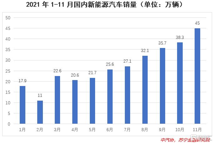 新能源汽车销量和渗透率在2021年逐月快速提升,也标志着我国新能源汽车市场已进入爆发式增长新阶段。中汽协方面认为,今年我国新能源汽车销量将达340万辆,同比增长1.5倍。对于明年国内新能源车市的发展走势,中汽协方面也给出了销量500万辆、增速47%的乐观预期。