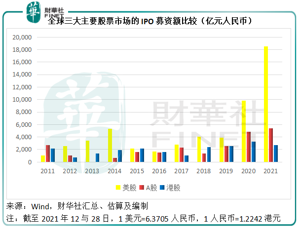 见下图,2020年和2021年两年,美股的IPO活动比往年大幅增加,远超A股和港股市场,主要得益于欧美大放水的推动作用。