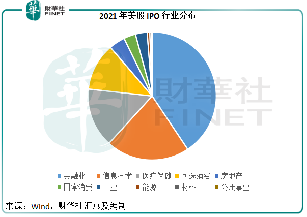 从美股市场的行业分类来看(根据Wind的数据),金融业的IPO最多,融资规模达到1550.59亿美元,其次是信息技术和医疗保健,分别为804.9亿美元和571.73亿美元。不过,笔者从Wind的数据中发现,归属于金融业的IPO中,大部分为SPAC项目。