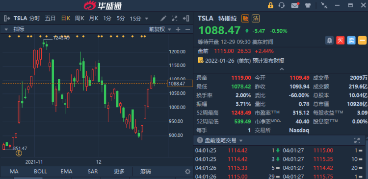 华盛资讯12月29日消息,今日美股盘前,特斯拉(TSLA)盘前涨2.44%,马斯克已完成10b5-1交易计划,该计划用于出售明年到期期权相关的股票。