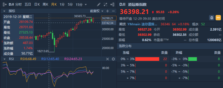 周二道琼斯指数 $DJI 创下五日连涨记录,上涨0.26%,收于36398.21点;今年迄今的涨幅为18.92%。