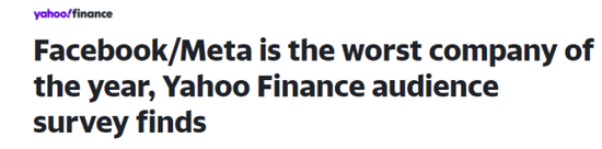 不久前,雅虎财经做了个“年度最差公司”的网络评选,Facebook的母公司Meta高居榜首,得票数超第二名50%以上,成为“2021年度最差公司”。