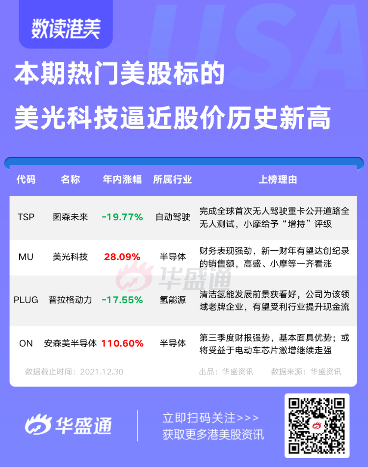 美股风向标 | 一夜“天地板”!图森未来官宣重大突破,小摩予增持评级