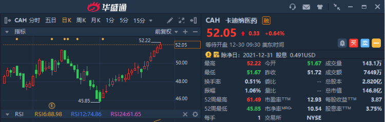 卡迪纳医药公司 $CAH 是全球最大的药品和医疗产品分销商之一。该公司接近三分之二的利润来自制药业务,近三分之一来自医疗业务。其股东可获得3.80%的股息。巴克莱 $BCS 对该股票的评级为“增持”,目标价为65美元。