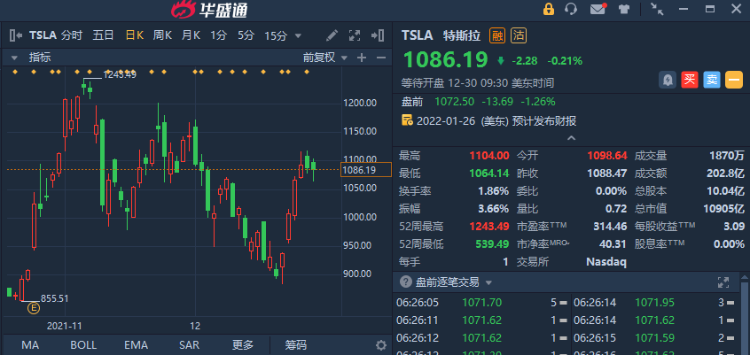 特斯拉盘前短线下挫,现跌1.26%,美国国家公路交通安全管理局:特斯拉(TSLA)因摄像头问题申请召回356,309辆汽车,另外因发动机盖锁扣问题召回119,009辆汽车。